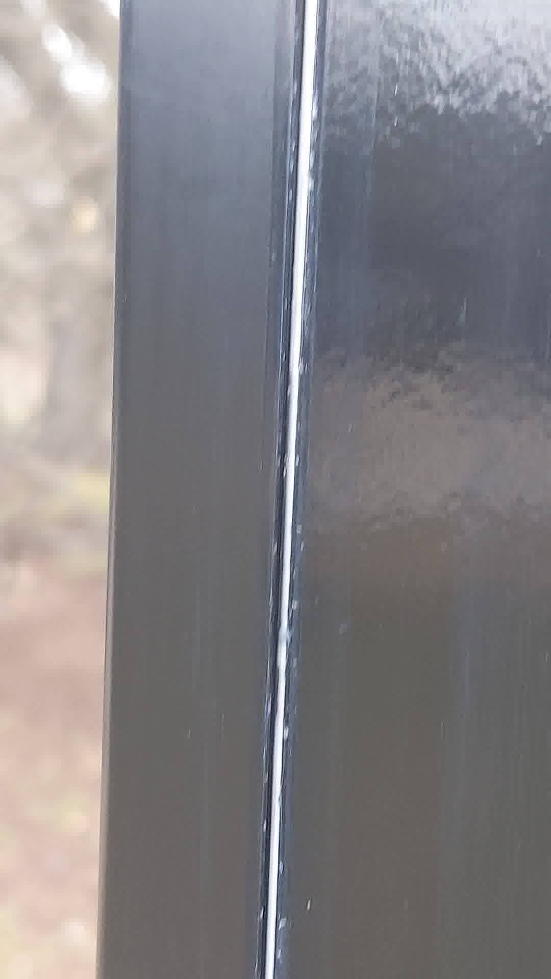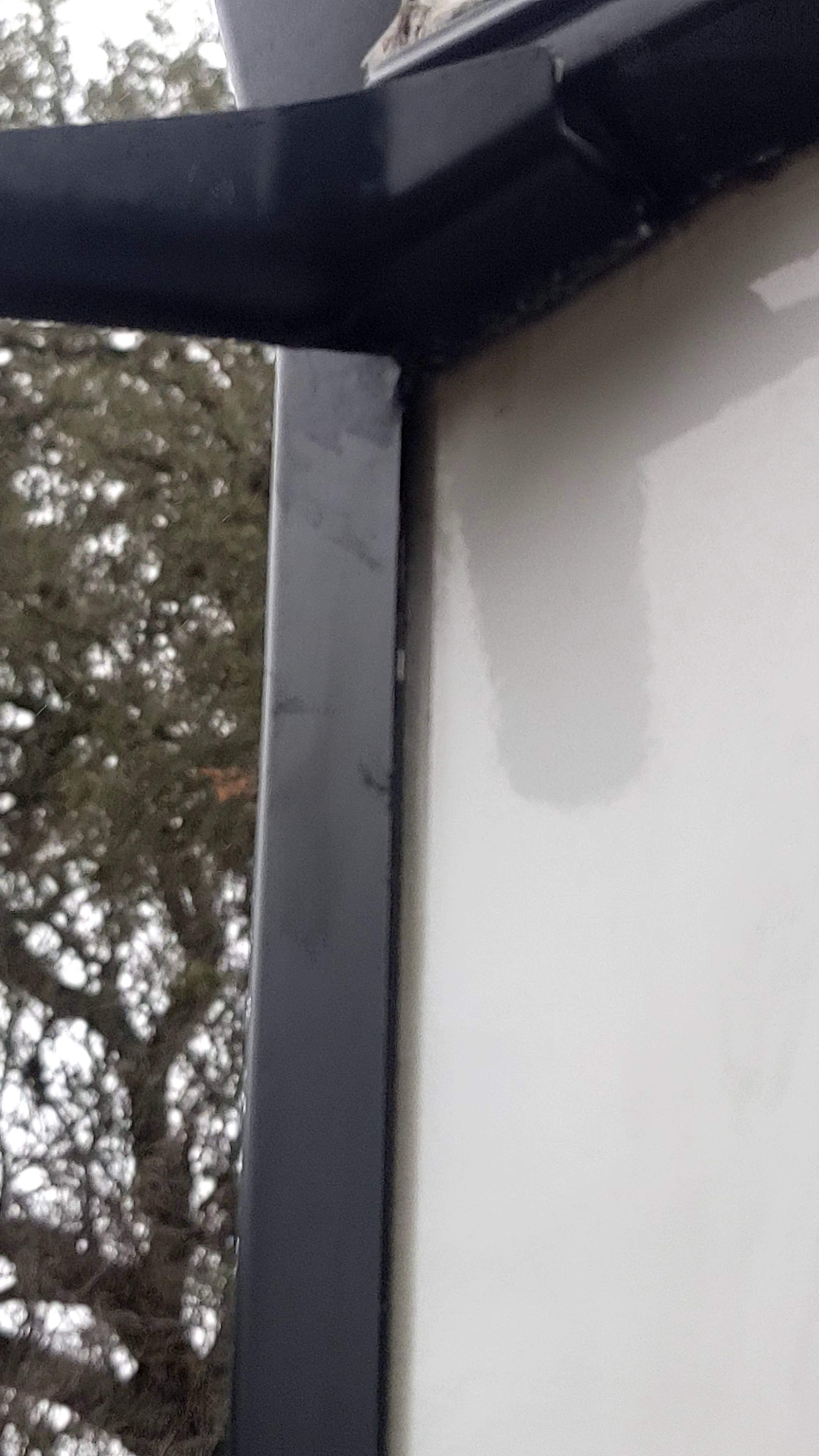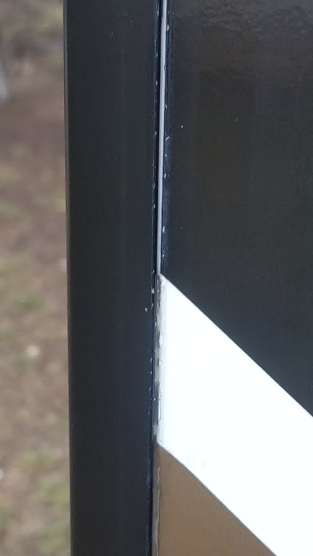 We resealed this seam on both sides with GE Advanced silicone. We used a lot, because we do not want to do this again.