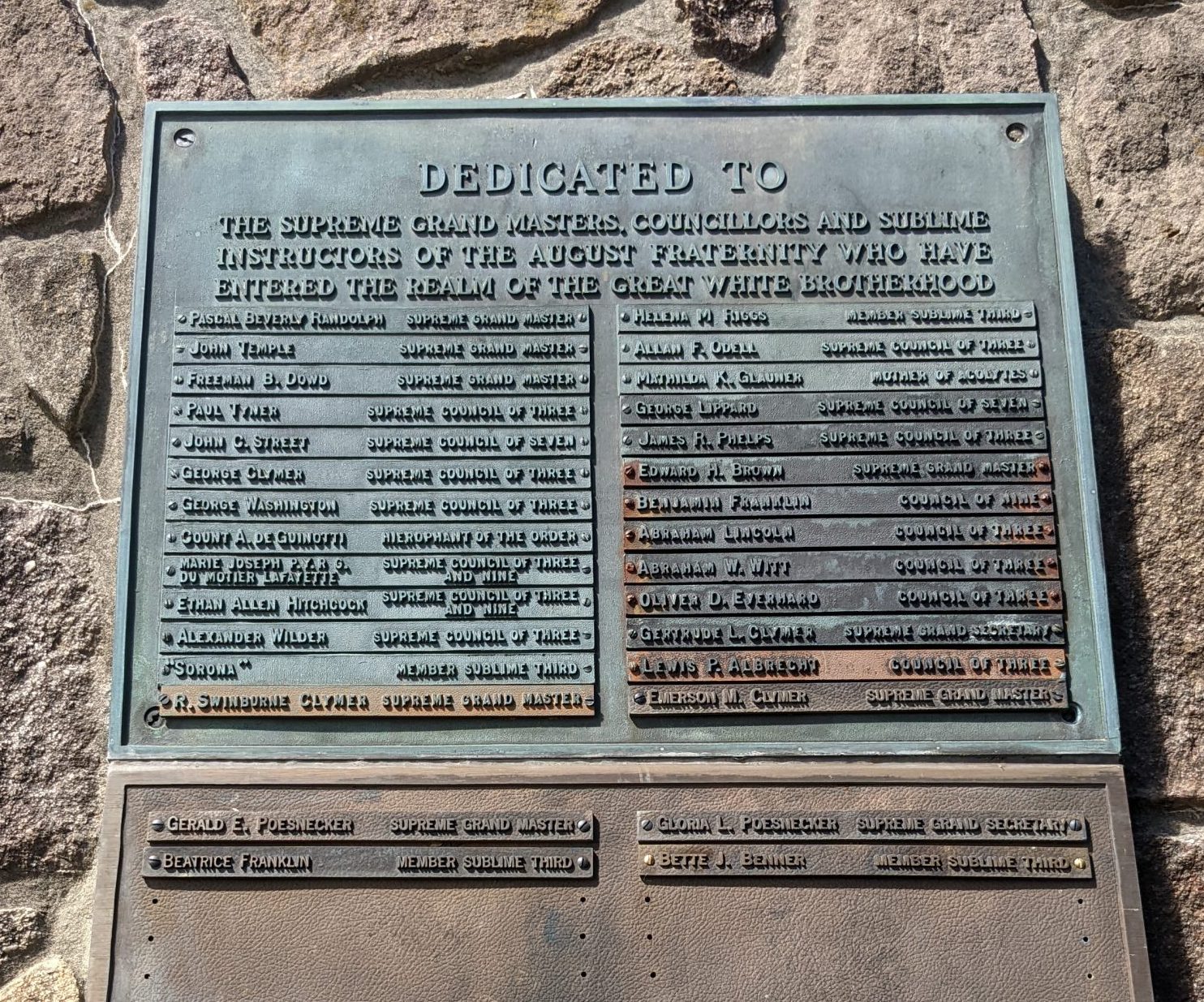 The Fraternitas Rosæ Crucis is a “secret” organization which has been operating in the United States since the time of Benjamin Franklin and George Washington, both of which were members of the fraternity. You may notice a few more names from history on the large pyramid monument.